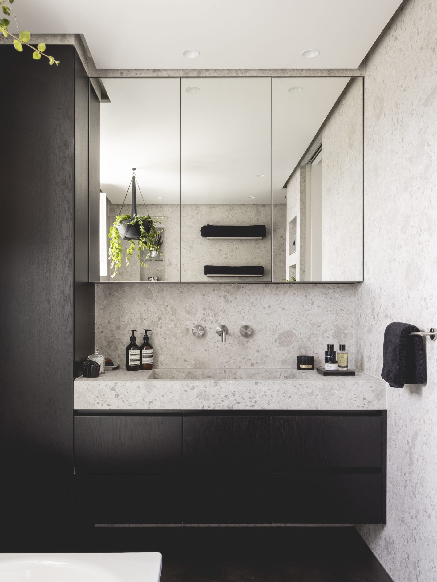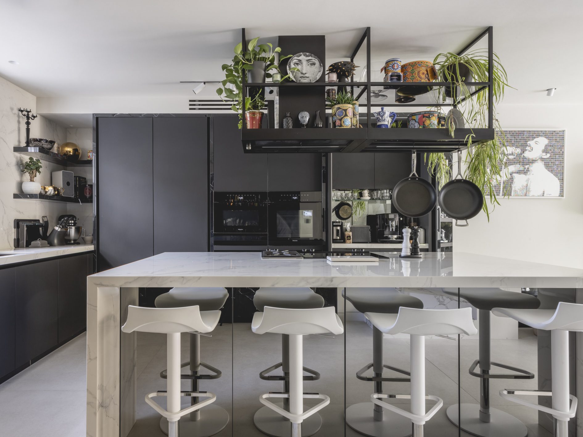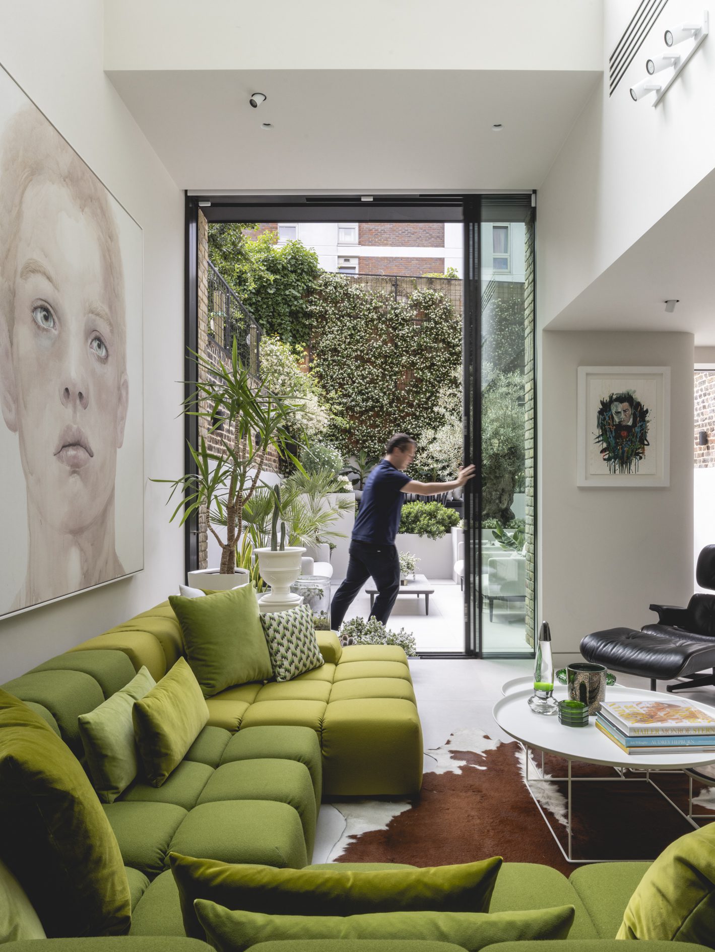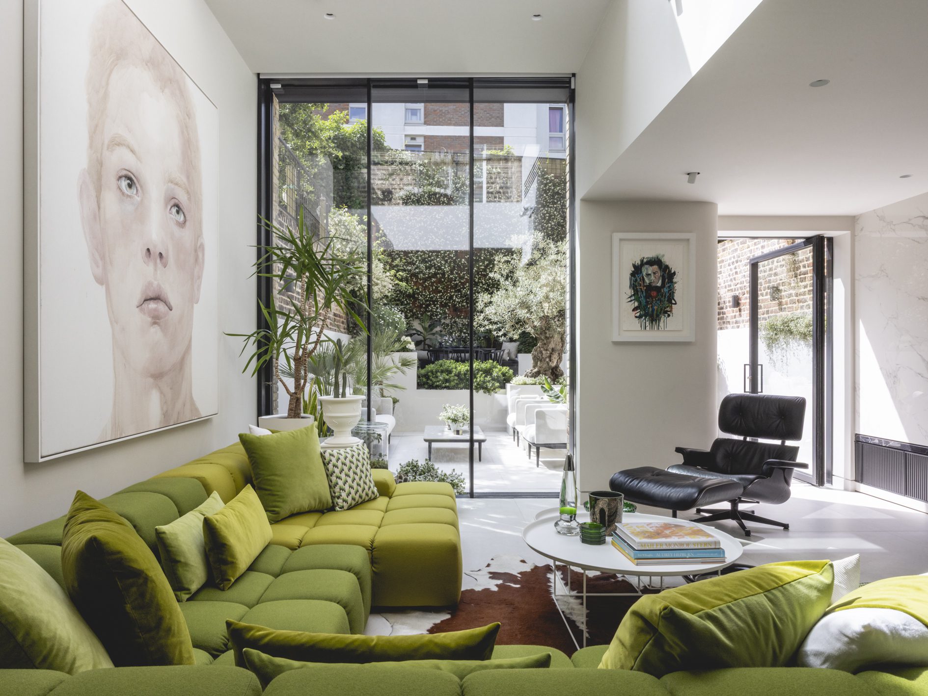 As part of the works, the existing lower ground floor and rear garden have been excavated to a single level, and the extension has been replaced with a new matching brick addition over 2 floors. New tall glazed doors by L2i (that are neatly concealed in pockets when open) lead from the open plan kitchen/dining/living area to the extensively remodelled garden, with planting scheme by Kate Eyre Garden Design.