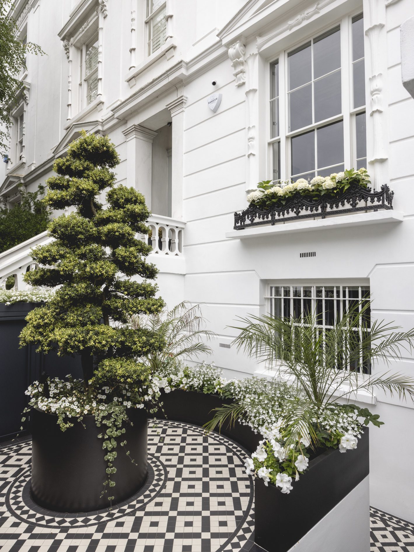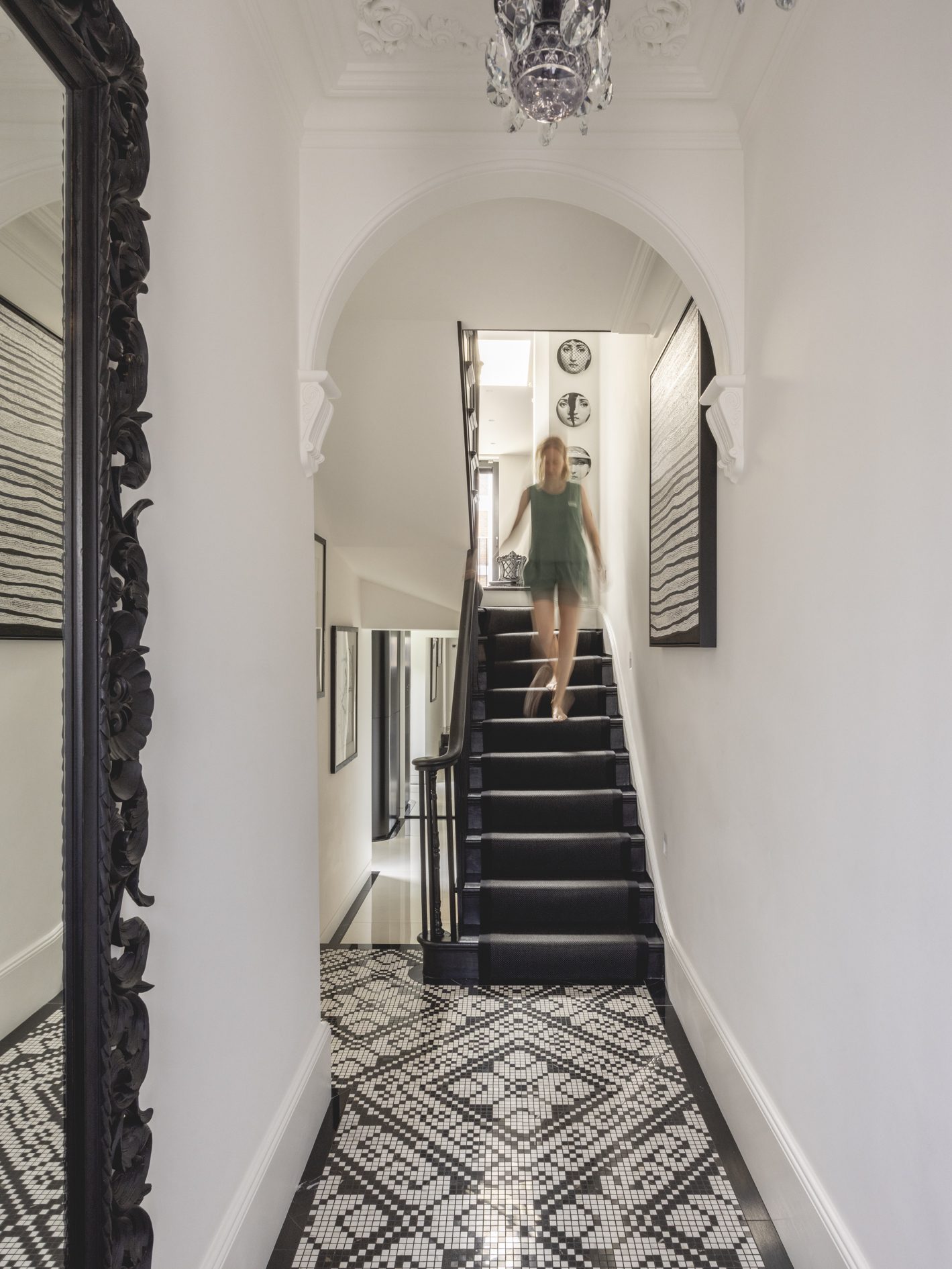 Throughout the house, historic features such as sash windows, shutters, and fireplaces have been renovated, and the front elevation has been restored to its former glory including decorative metalwork and stucco plasterwork. The result is a bright, graphically interesting home ideally suited for modern living and enriched by the historic character of the original building.
