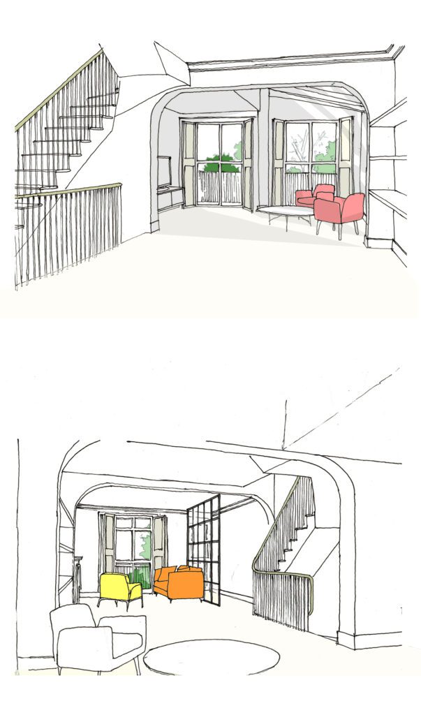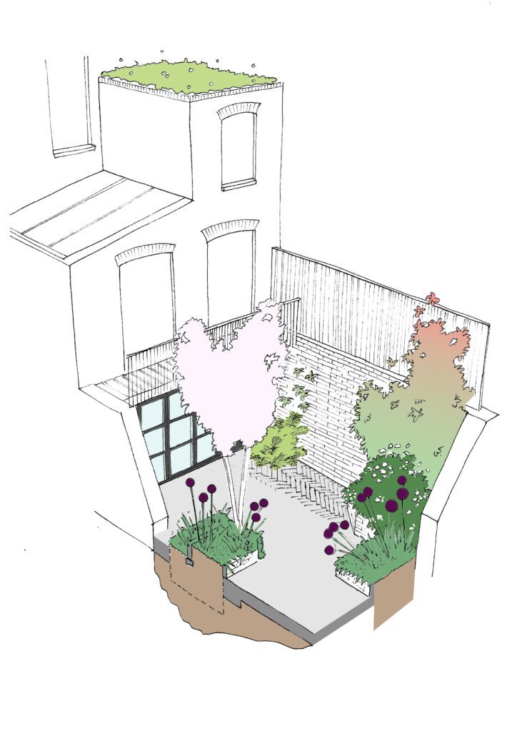 As the level of the rear garden will be excavated to its full length, we created detailed landscaping plans with Jeremy Rye, our landscape consultant. The existing trees will be replaced by a single stem, tall Birch variety that is more appropriate for the planting conditions. These trees will be complemented by a low light planting scheme that will provide year-round greenery.